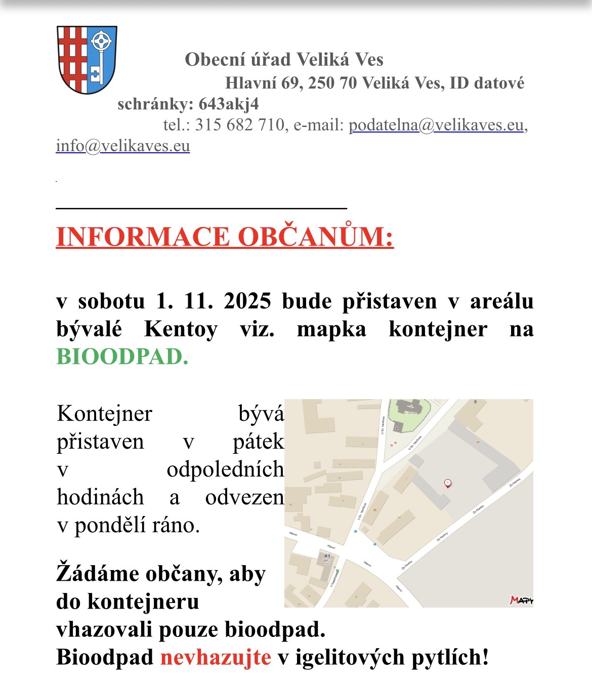 Kontejner na bioodpad - 1. 11. | Obec Veliká Ves