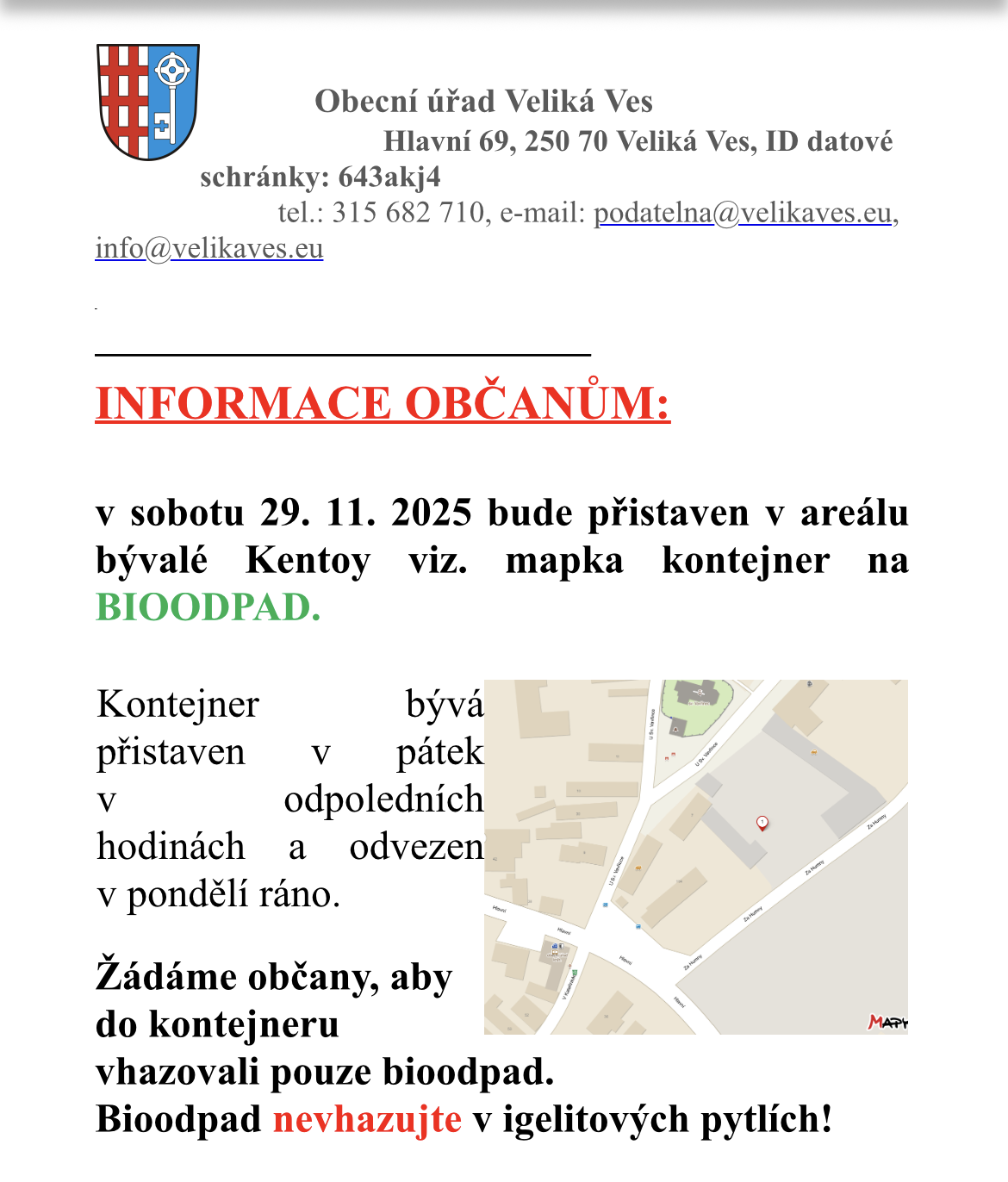 Kontejner na bioodpad - 29.11. | Obec Veliká Ves