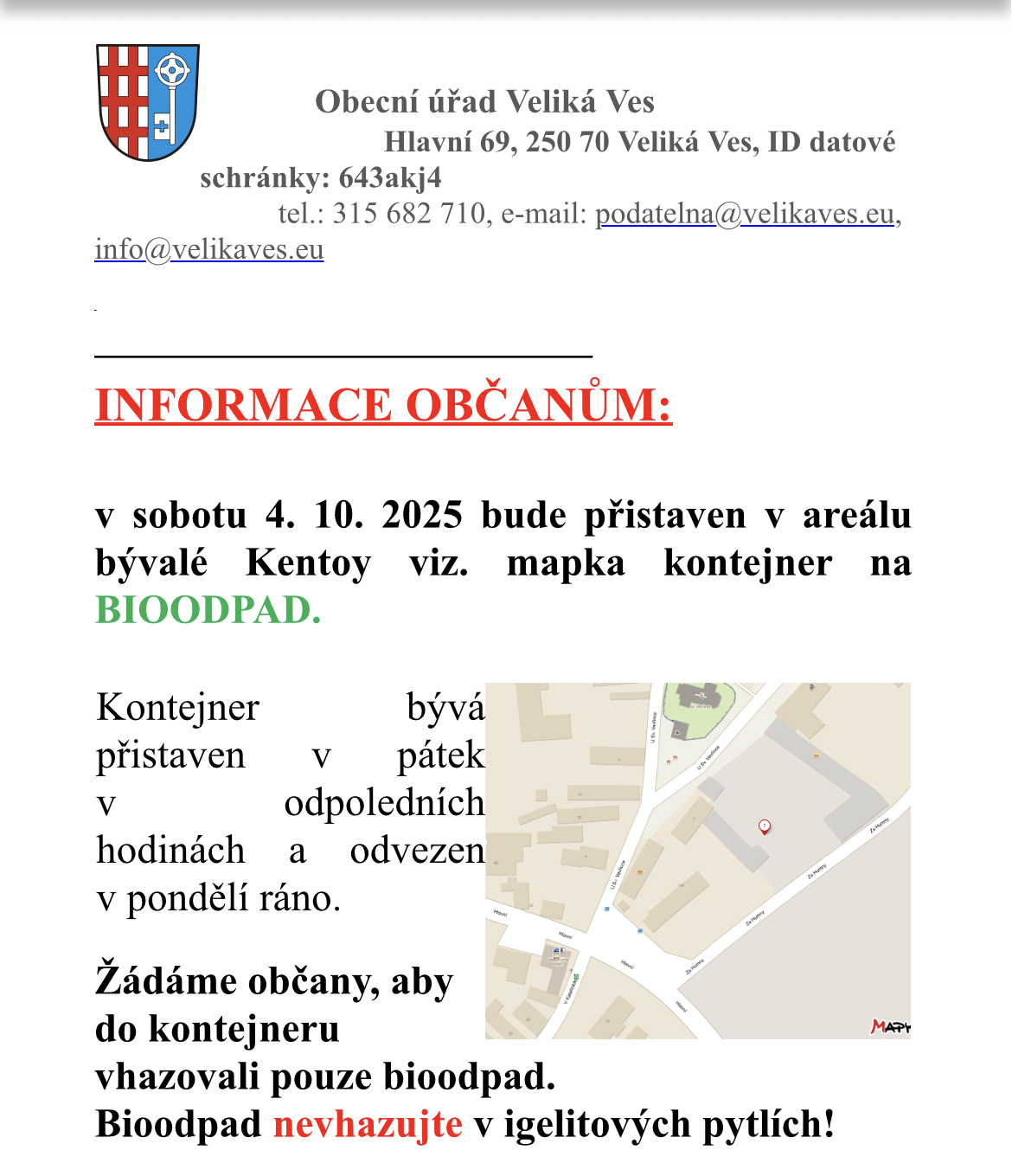Kontejner na bioodpad - 4. 10. | Obec Veliká Ves