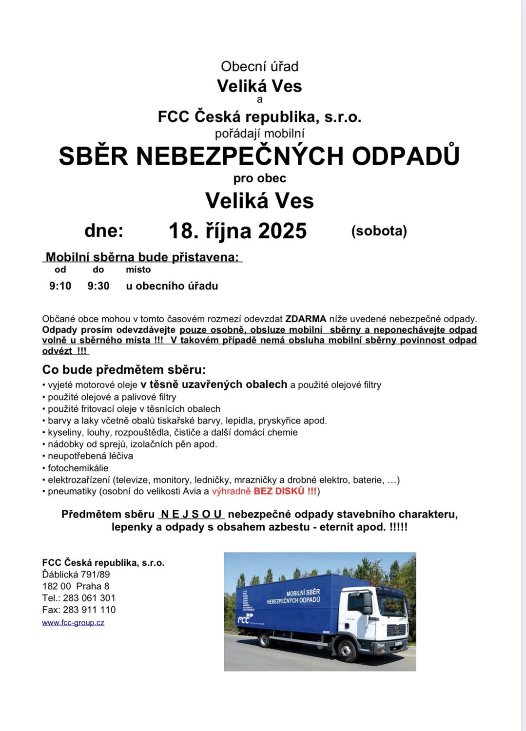Sběr nebezpečných odpadů- 18. 10. | Obec Veliká Ves