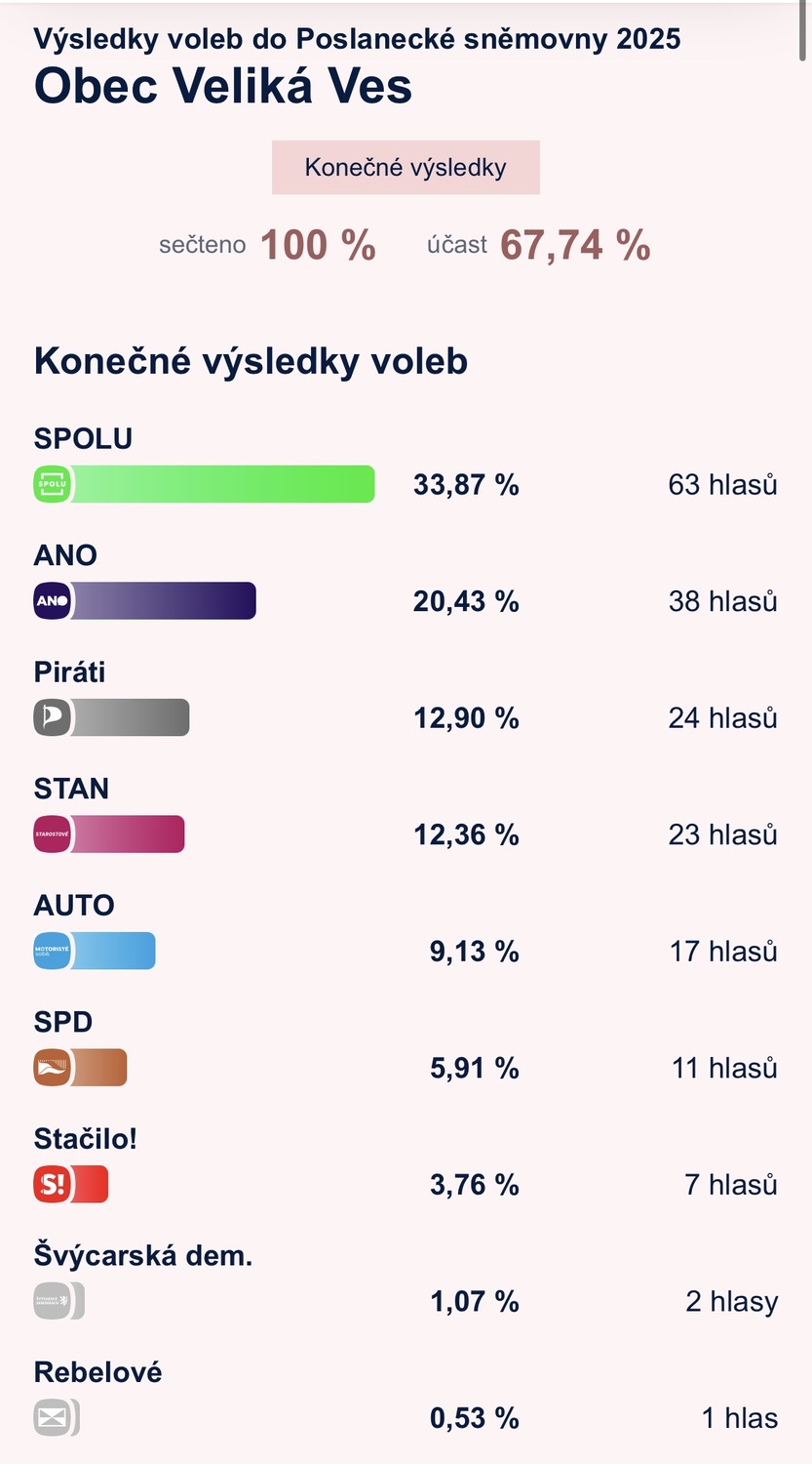 Výsledky voleb do Poslanecké sněmovny ve Veliké Vsi.